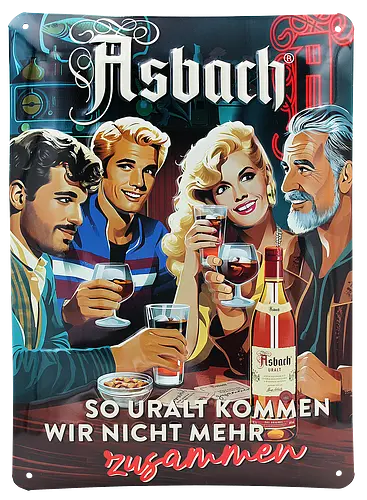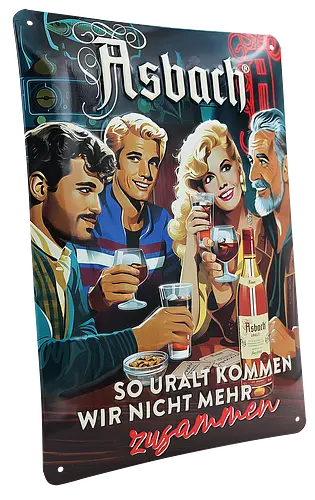 Bringe mit dem Blechschild die Asbach Vibes direkt an deine Wand. Ob in der Bar, im Wohnzimmer oder Partykeller, das Asbach Schild wird zum Hingucker.